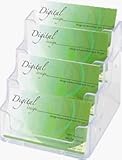 Meet all your business card display needs with these four choices in clear plastic. DEF70841 DEF-70841 079916708416 7991670841 Four-Pocket Countertop Business Card Holder. Clear, plastic business card holder. Display multiple cards in one convenient holder. 4W x 4-1/8d x 3-1/2h. SOLD BY THE EA