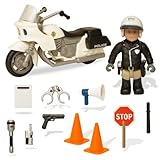 Features policeman figure, contains 10 accessories including a motorcycle, handcuffs, cones, traffic sign and other police accessories. Features policeman figure Contains 10 accessories! Includes a motorcyle, handcuffs, cones, traffic sign, and other police accessories