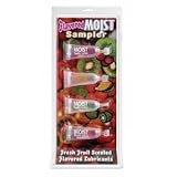 Sampler 4 piece package. Moist Flavored Personal Lubricant silky smooth. Its unscented water based formula. Crystal clear Non-Staining and easy clean-up. Personal Lubricant Water-based Formula Non-Staining Stays Wet 4 Piece Sampler Pack